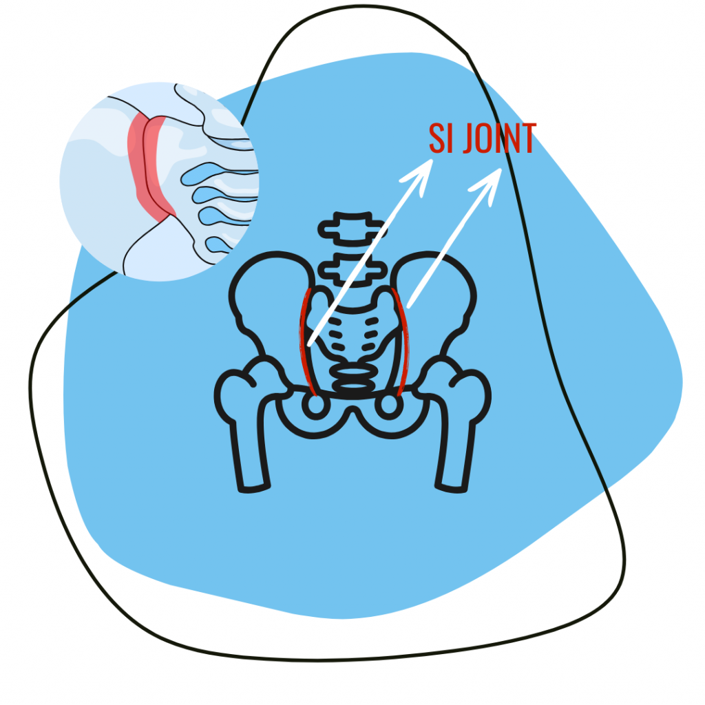 The SI joints are located at the base of the spine where the hip bones connect to the tailbone. The joints allow for the pelvis to shear and absorb the force that goes from the legs to the back. The SI joints have a large surface area at the base of the spine with many of the nerves that travel across the pelvis and down the leg alongside it. The sciatic nerves are the biggest nerves in the body and are made up from 5 levels of the lumbar and sacrum nerves. They send all of the information for sensation and motor function up and down the spinal cord to the brain.